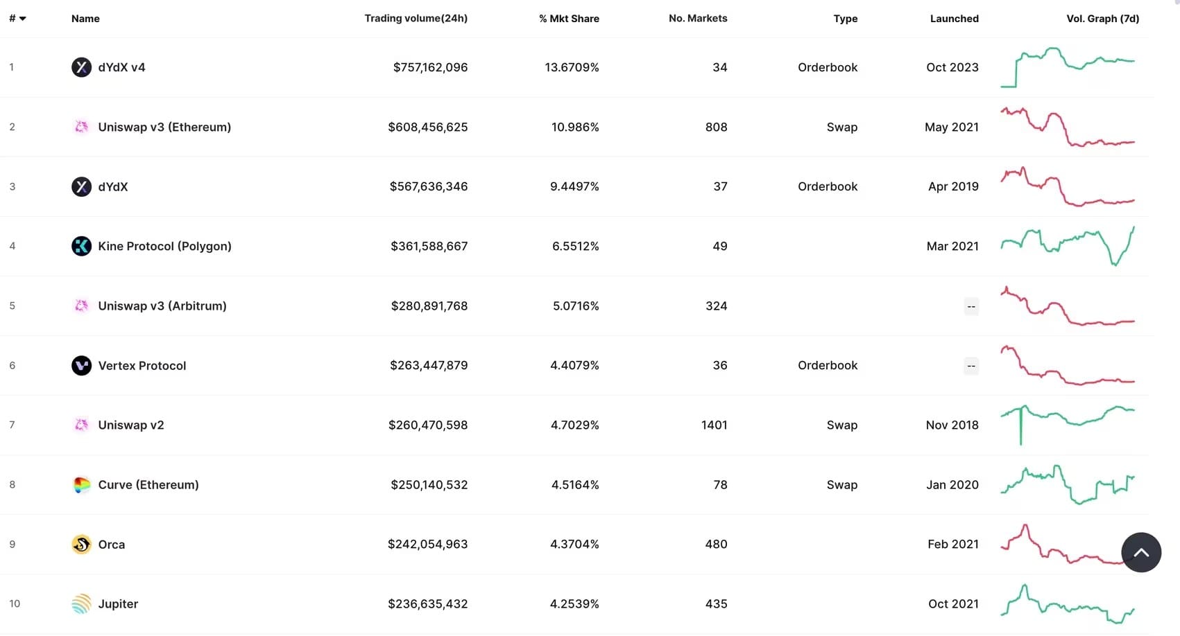 On January 18th, the dYdX v4 market surpassed $757 million in 24-hour trading volume, overtaking Uniswap’s v3 Ethereum market. DYdX’s v3 market took third place on the list. DYdX allows perpetual contracts – contracts that mimic the features of traditional futures but without an expiration date. The decentralized exchange had recently migrated from Ethereum to Cosmos.