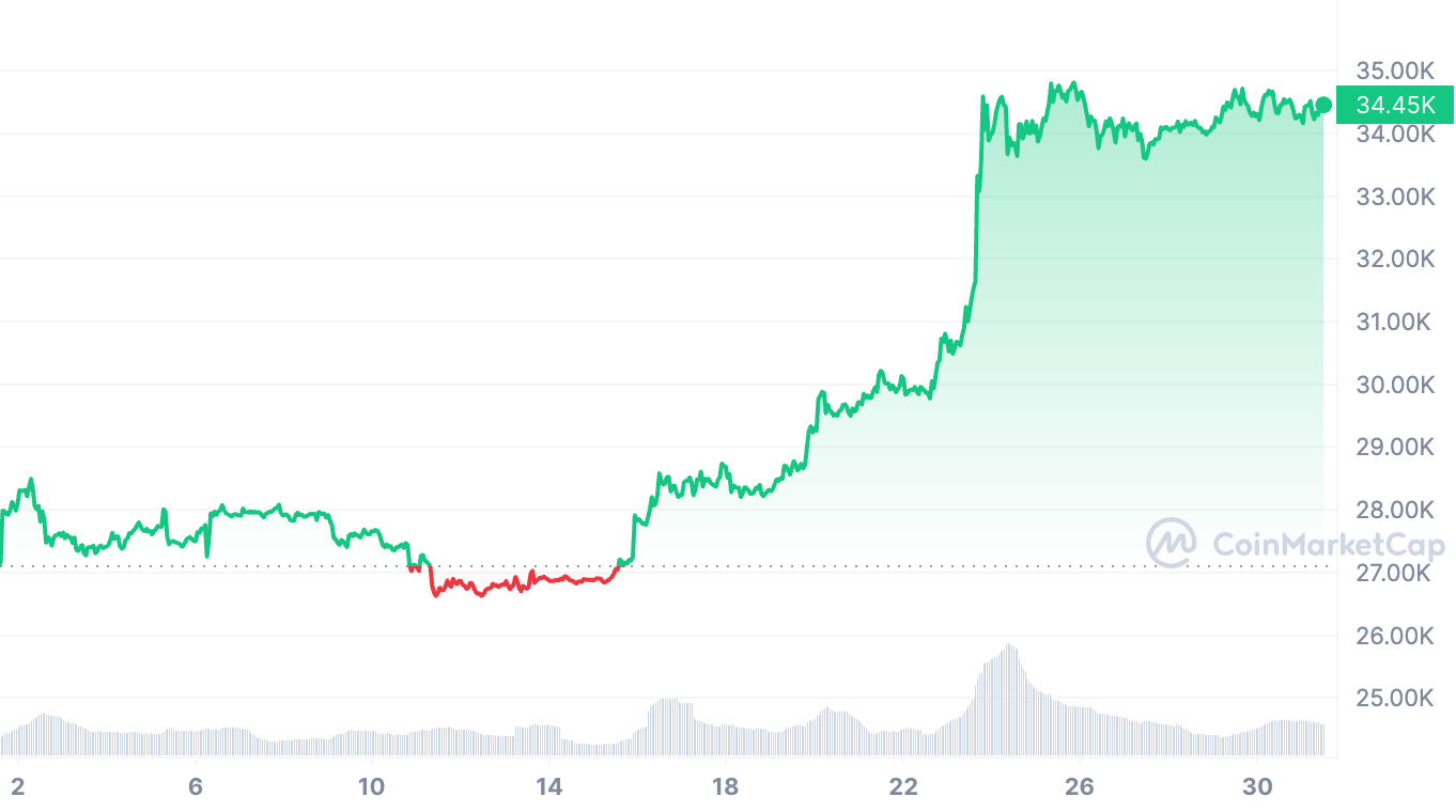 According to a report by Cointelegraph, Google searches for "Buy Bitcoin" were up worldwide last week. Notably, the UK saw an 800% increase in searches for “Buy Bitcoin”. This follows Bloomberg’s reports of a “Bitcoin resurgence” amid the Bitcoin Spot ETF ticker appearing on the DTCC website, with Bitcoin jumping to $35K.