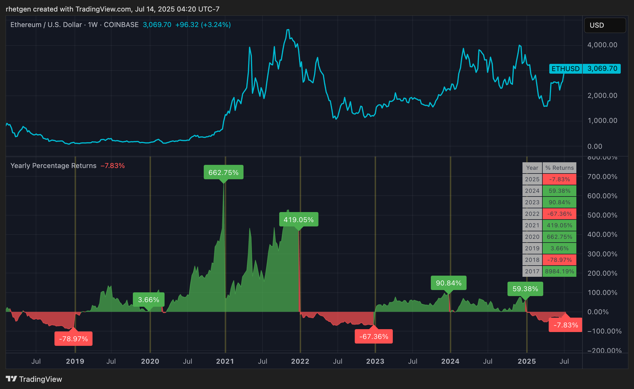 Bitcoin hit an all time high of $123,000 USD this week and Ethereum crossed the $3000 mark. Is this finally the start of the ETH rally?